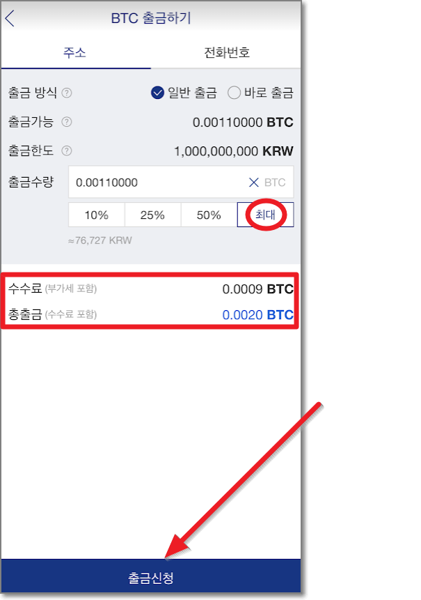 코인 어스(CoinUs) 지갑으로 비트코인 전송하기