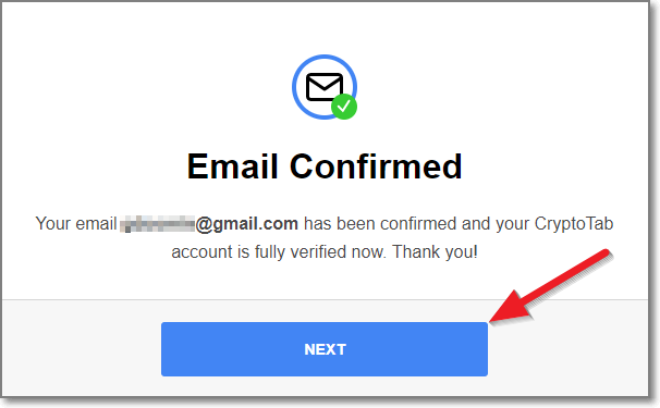 Email Confirmed(이메일이 확인되었습니다.)라고 알려줍니다. NEXT를 누릅니다.