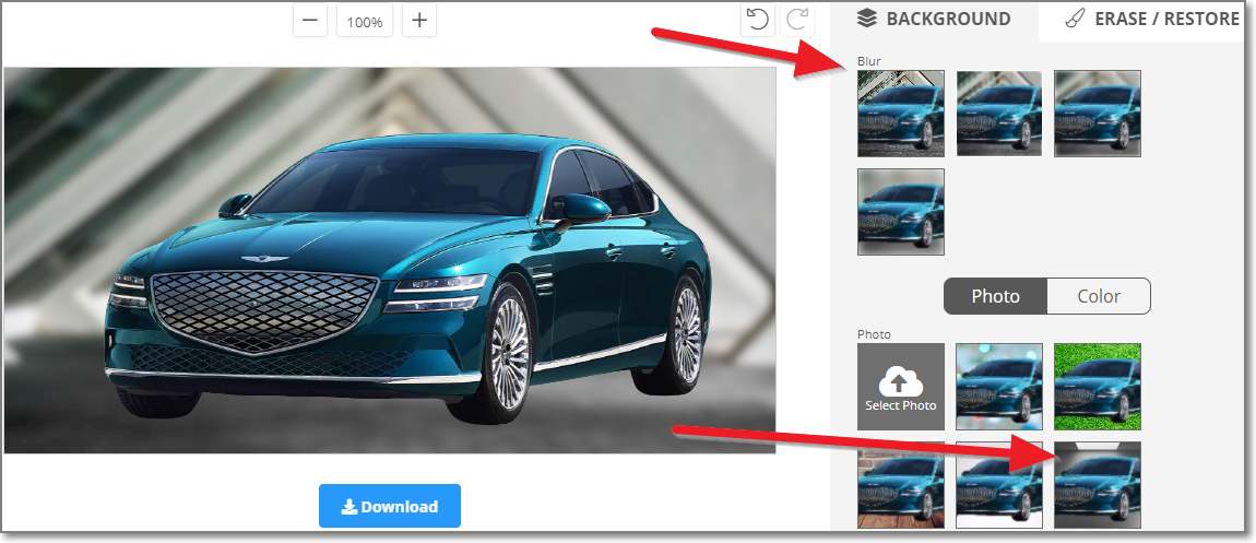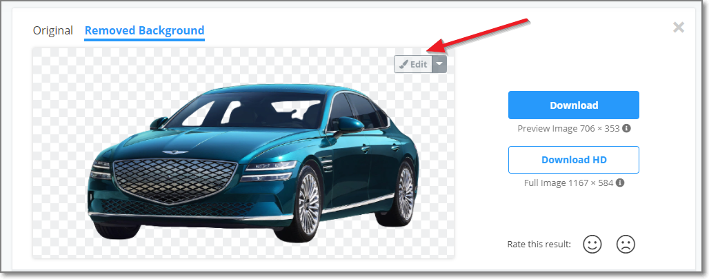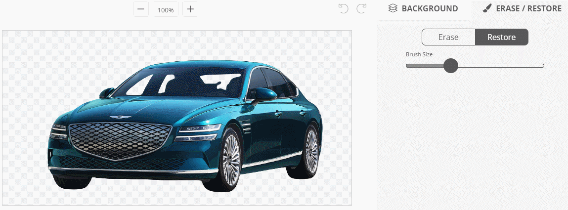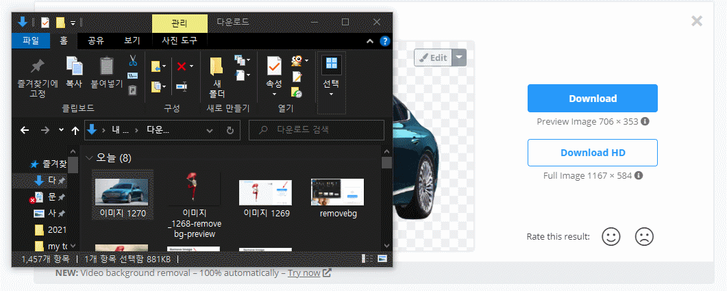 역시 움직이는 이미지로 보여드리겠는데요. 잘 보니까 자동차의 창문까지도 누끼를 따버리는군요. 이 부분은 조금 수정이 필요할 듯합니다만 바로 이것까지도 removebg 사이트에서 해결이 가능합니다.