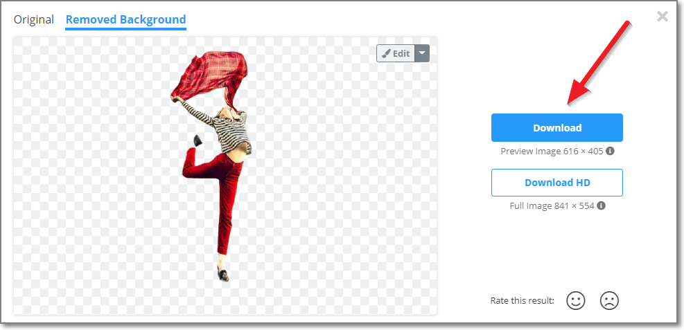 진짜 10초 정도도 안 걸려서 뒷배경이 지워지는 마법을 보실 수 있는데요. 결과물은 파란색으로 되어있는 Download버튼을 누르면 받을 수 있습니다. (아래 있는 조금 큰 사이즈는 유료라고 보시면 되며 이 부분에 대해서는 밑에서 좀 더 자세히 알아보도록 하겠습니다.)