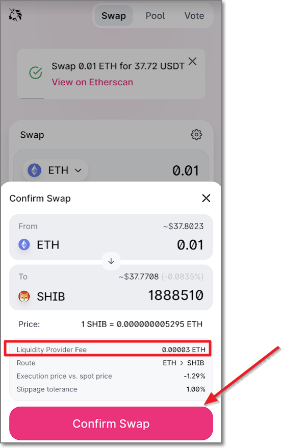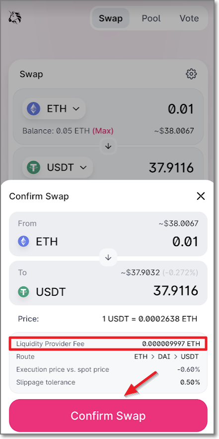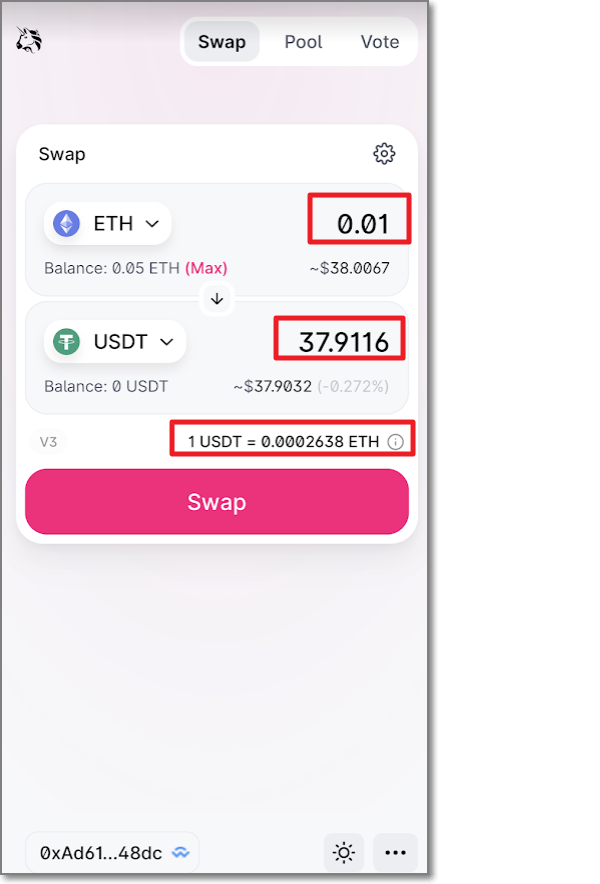 ETH → USDT 스왑