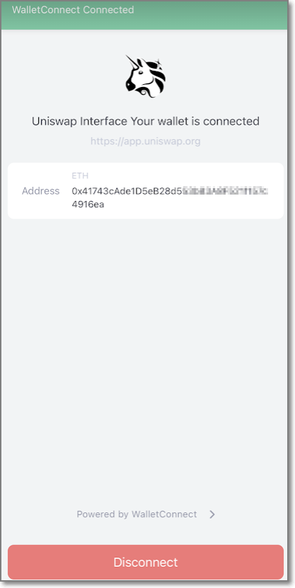 유니스왑(Uniswap)에 지갑(imToken) 연결 완료