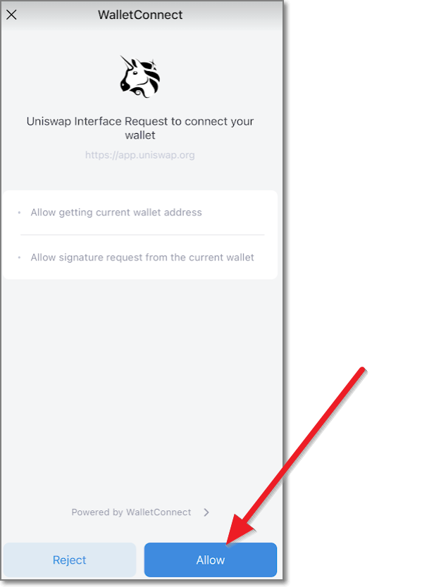 아임토큰으로 지갑을 선택해주면, 유니스왑이 아임토큰 지갑을 사용한다고 합니다. Allow를 눌러서 허락해주시면 연결이 됩니다. 언제라도 연결을 해지할 수도 있습니다.
