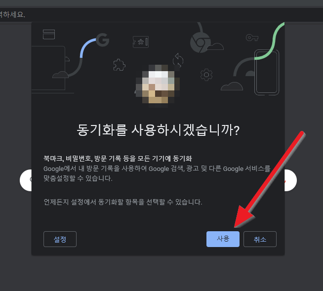 동기화를 사용하시겠습니까? 에 "사용"을 누릅니다.