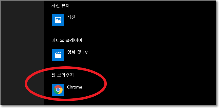 누르면 나오는 앱 리스트 중에서 방금 설치한 Chrome를 눌러줍니다.