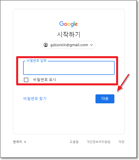 비밀번호를 입력하고 "다음"을 누릅니다.