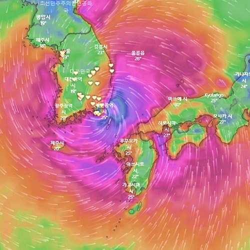 태풍의 이동경로 예상하기-windy