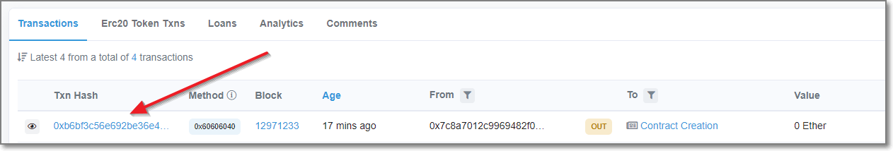 만약 10분 이상 기다려도 계속 pending 이거나 또는 실수로 deploy를 한번 더 눌렀다가 취소했을 경우에는 10분 이상 지난 다음에 자신의 메타마스크 주소를 이더스캔에서 검색하여 방금 만든 코인을 찾을 수 있습니다.