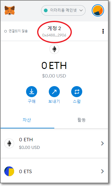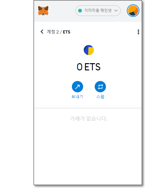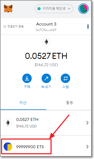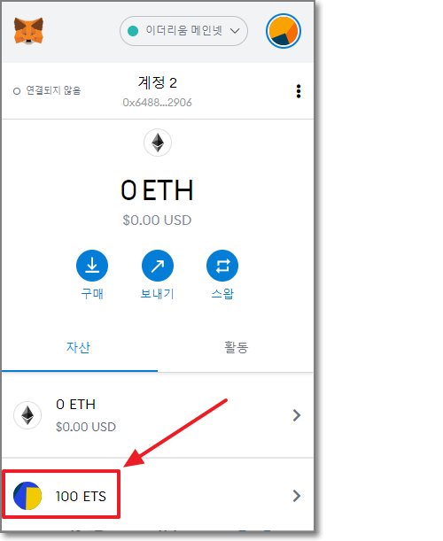 ETS 코인이 추가가 되는 것을 볼 수 있습니다.