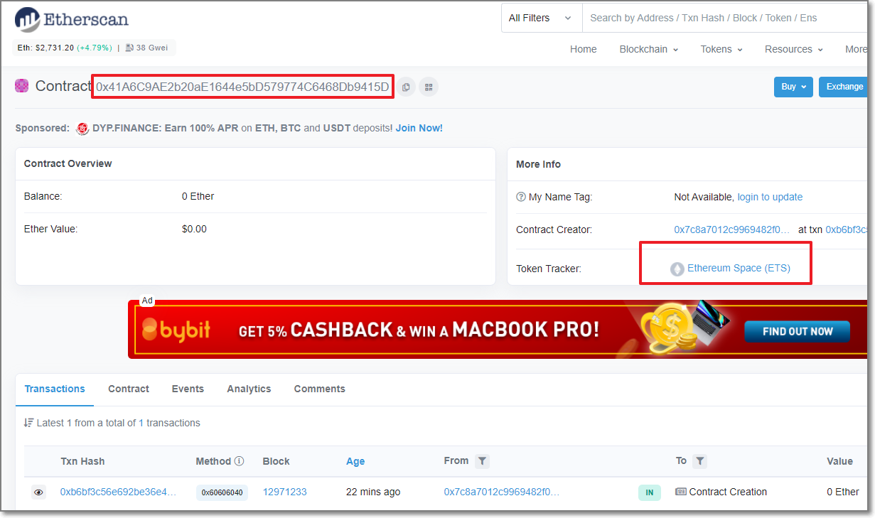 ETS(이더리움 스페이스) 토큰 1억 개가(100000000) 만들어진 것을 확인할 수 있습니다.