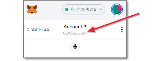 메타마스크의 주소를 마우스로 클릭하면 주소가 복사됩니다.