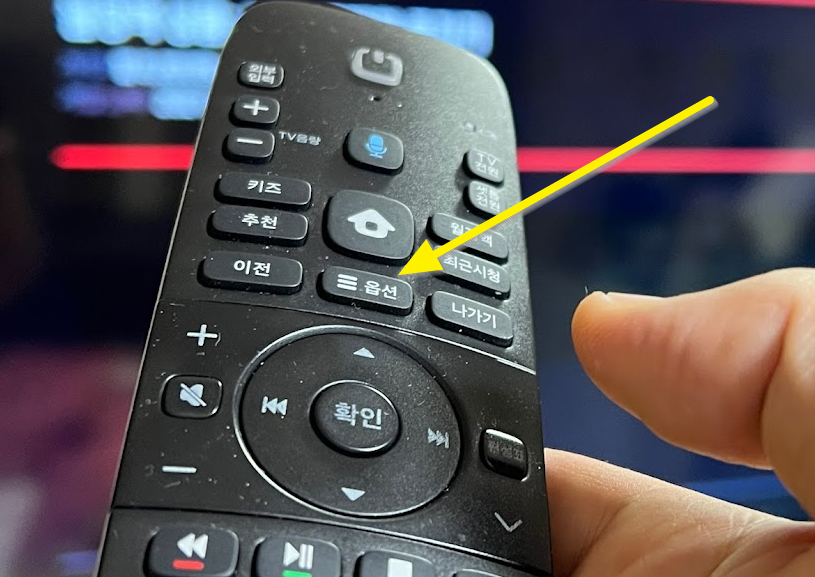 리모콘에서 아래처럼 생긴 "옵션"버튼을 누릅니다.
