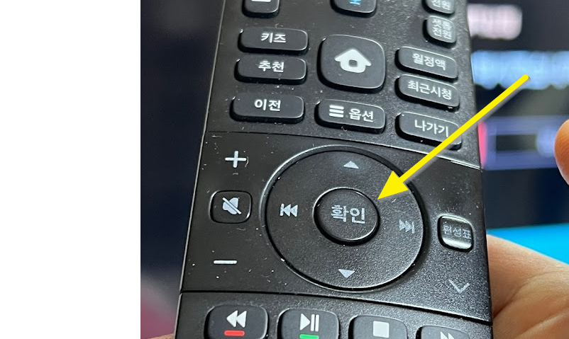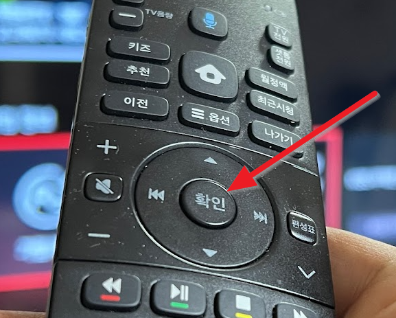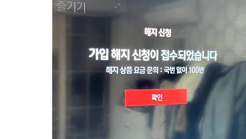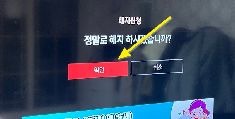 옵션 버튼을 누르면 바로 "정말로 해지하시겠습니까?"라고 물어보는데요. "확인"을 리모컨 버튼에서 누릅니다.