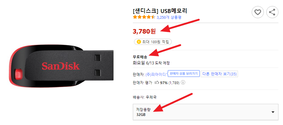 윈도우10 설치를 위해서 꼭 8기가 USB 플래시 드라이브를 사실 필요는 없으며 아래처럼 32기가짜리를 사셔도 문제없습니다. 오히려 32기가가 더 저렴하기까지 하네요.