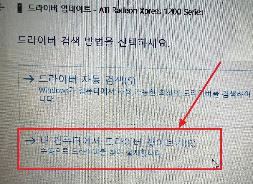 드라이버 검색 방법은 "내 컴퓨터에서 드라이버 찾아보기"를 선택합니다.