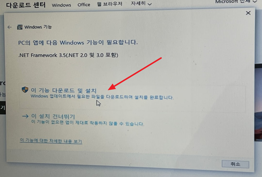 닷넷 프레임워크(. NET Framework 3.5)를 설치합니다.