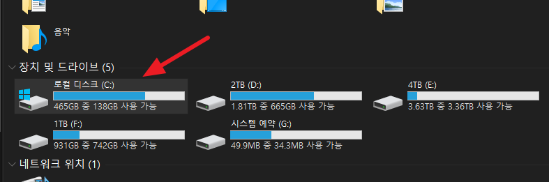 윈도우에서 파일탐색기를 열어서 로컬디스크(C:)를 들어갑니다.
