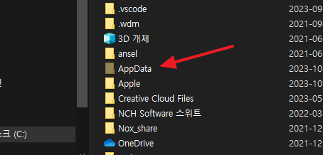 폴더의 아래쪽으로 조금만 내리면 AppData 폴더가 보이는데요. 그런데 안보이신다고요?