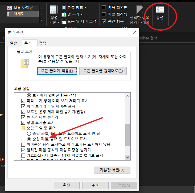 AppData폴더가 무작정 지우면 윈도우 시스템에 문제가 생기는 폴더이다보니까 숨김파일로 되어있습니다. 혹시 숨김파일이 안보인다면 아래처럼 탐색기 옵션에서 숨김파일을 표시하도록 바꿔야합니다.