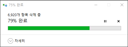 지우다 보면 당장 안지워지는 파일이 있을 수 있는데요. '건너뛰기'를 누릅니다. 재부팅후 다시 지우면 지워집니다.