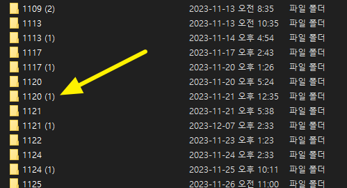 옮기고자 하는 1120(1) 폴더가 보입니다. 이 폴더를 통채로 옮기면 되는데요. 가능하면 파일을 주고받기 편하게 알집 등으로 압축을 해주면 더 편리합니다. 여기서는 압축을 해보겠습니다.
