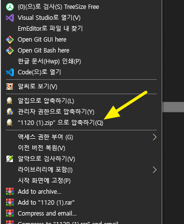 그러면 아래처럼 1120(1).zip 이라는 파일이 생깁니다.