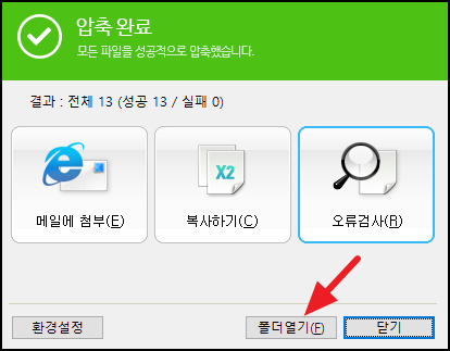 옮기고자 하는 1120(1) 폴더를 알집으로 압축하고 나서 알집 화면에서 아래쪽에 '폴더열기'를 누릅니다.